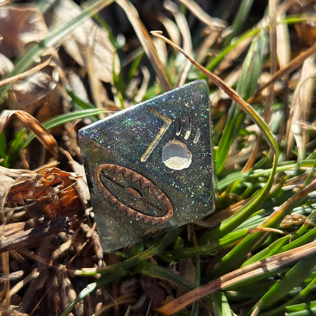 Listing is for an INDIVIDUAL D8. These D8s have images that each represents a different type of trap a DM can plant in the pathway of their players either in a dungeon or just because they're being annoying. Traditional D8 shape and size. No numbers- just symbols. Comes with a card for identifying what type of trap you rolled- OR- DM can make their own plans and ideas! Each style is polished to a glass finish on each face and is inked to suit its OOAK style.