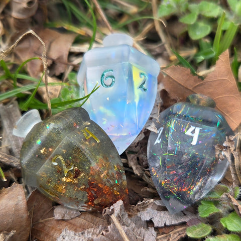 DISCLAIMER: These dice are handmade and as such may have small imperfections associated with many handcrafted dice. This may include slight imperfections around a sprue point, small scratches or slight flashing. I do my best to minimize these and will note anything that specifically stands out in the description above if there is anything noted. THE DIE PHOTOGRAPHED IS THE EXACT DIE YOU WILL RECEIVE.