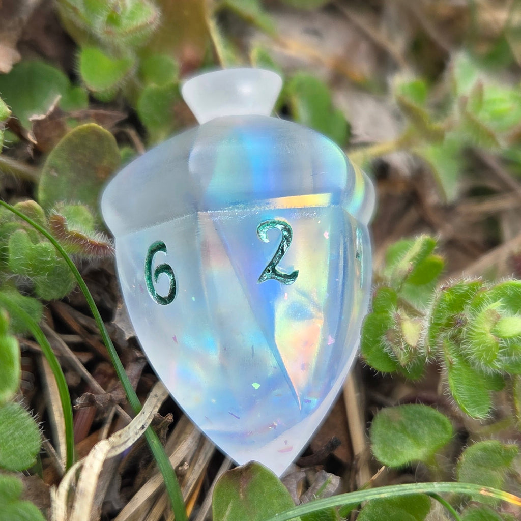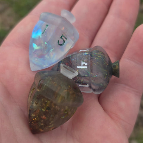 This Listing is for an individual handmade D6 die design that looks like an adorable acorn! Numbers are inked differently depending on the individual option chosen. It features different polished finishes as well depending on individual die chosen