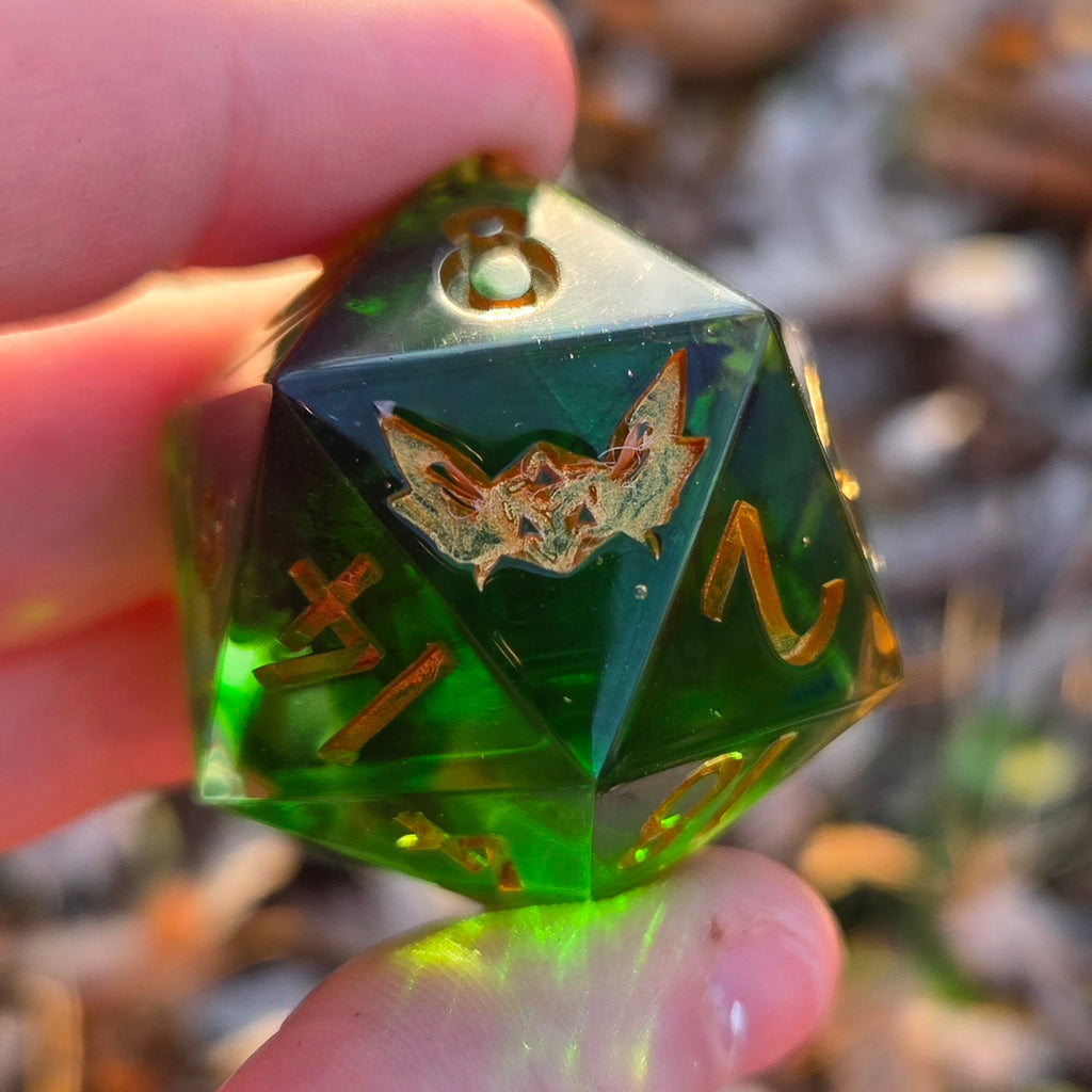 'Obscurus' Handmade Resin Green Inky Black Colorshifting 30mm Chonky Boi D20 TTRPG Gaming Dice