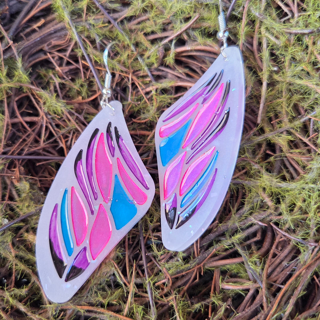 'Bejeweled Wings' Glow in the Dark Sterling Silver Handmade Resin Handpainted Dangle Earrings