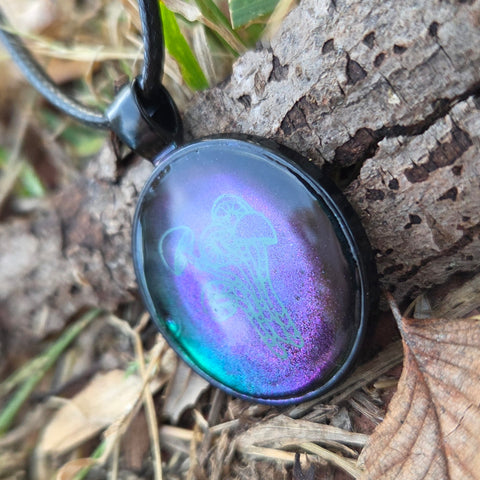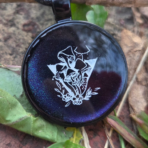 One inch round hypoallergenic mushroom themed pendant necklace.