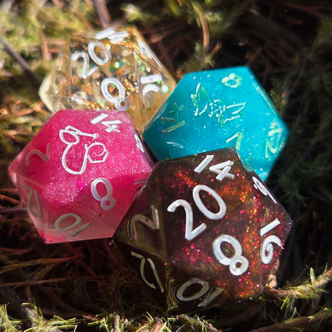 This Listing is for an individual handmade D20 die design that each feature a different design. Numbers are inked differently depending on the individual option chosen. It features sharp edges and my Naevi’s Oddities exclusive font.