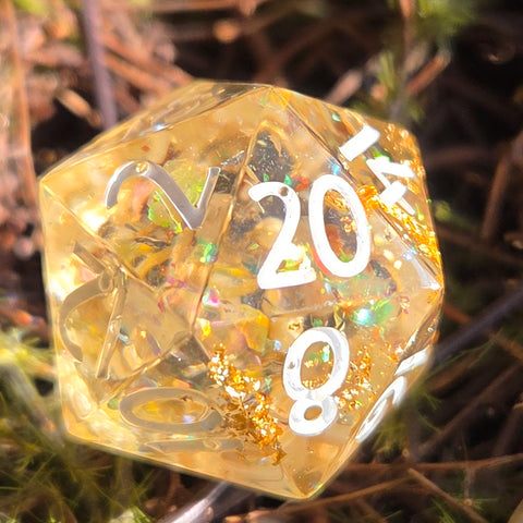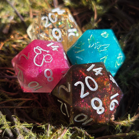 DISCLAIMER: These dice are handmade and as such may have small imperfections associated with many handcrafted dice. This may include slight imperfections around a sprue point, small scratches or slight flashing. I do my best to minimize these and will note anything that specifically stands out in the description above if there is anything noted. THE DIE PHOTOGRAPHED IS THE EXACT DIE YOU WILL RECEIVE.