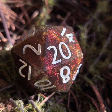 Maker Marks: Colorshifting D20 has a small pinprick sized spot photographed on the #1 side.