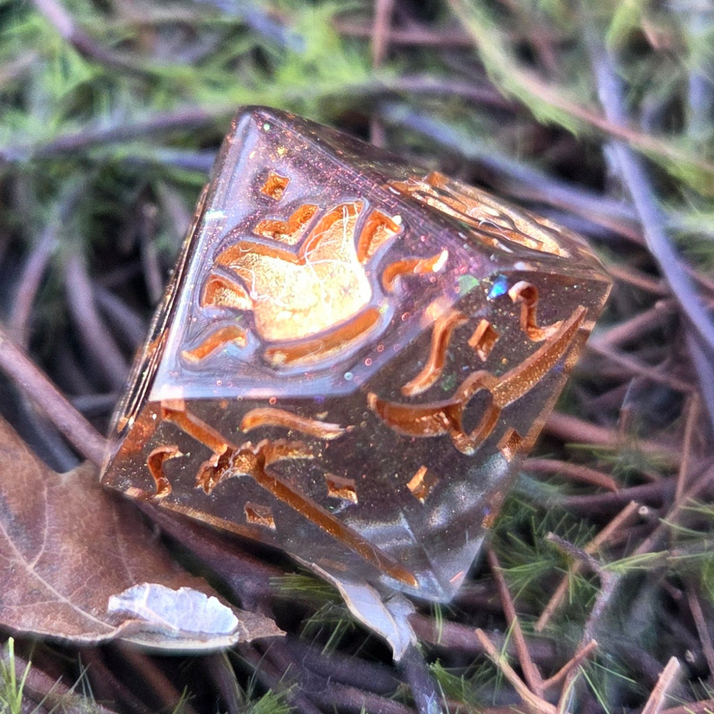 DISCLAIMER: These dice are handmade and as such may have small imperfections associated with many handcrafted dice. This may include slight imperfections around a sprue point, small scratches or slight flashing. I do my best to minimize these and will note anything that specifically stands out in the description above if there is anything noted. THE DICE PHOTOGRAPHED IS THE EXACT ONE YOU WILL RECEIVE